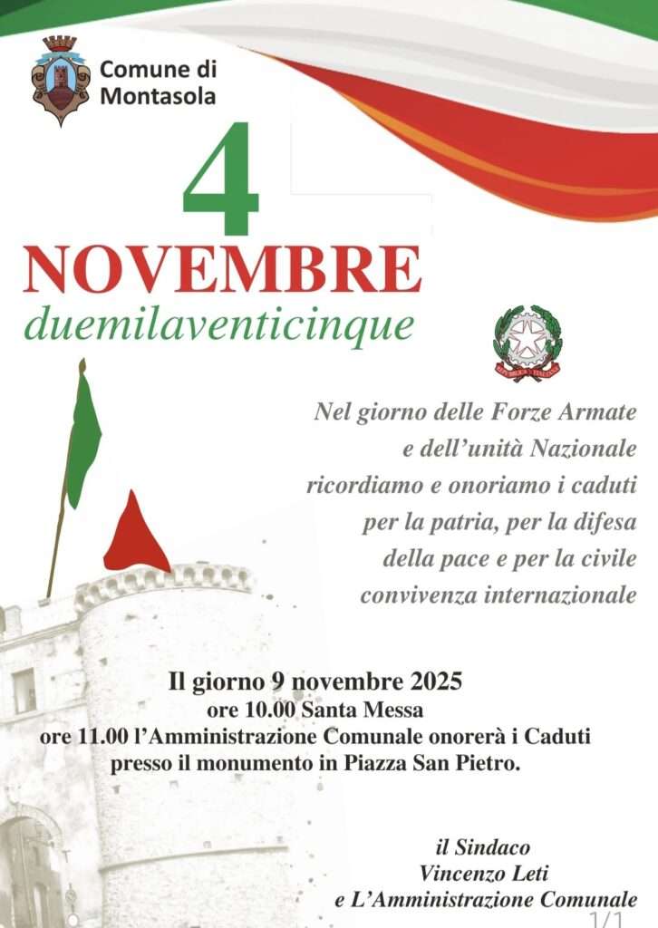 Il 9 novembre 2025 l’Amministrazione Comunale onorerà i Caduti per la patria, per la difesa della pace e per la civile convivenza internazionale
